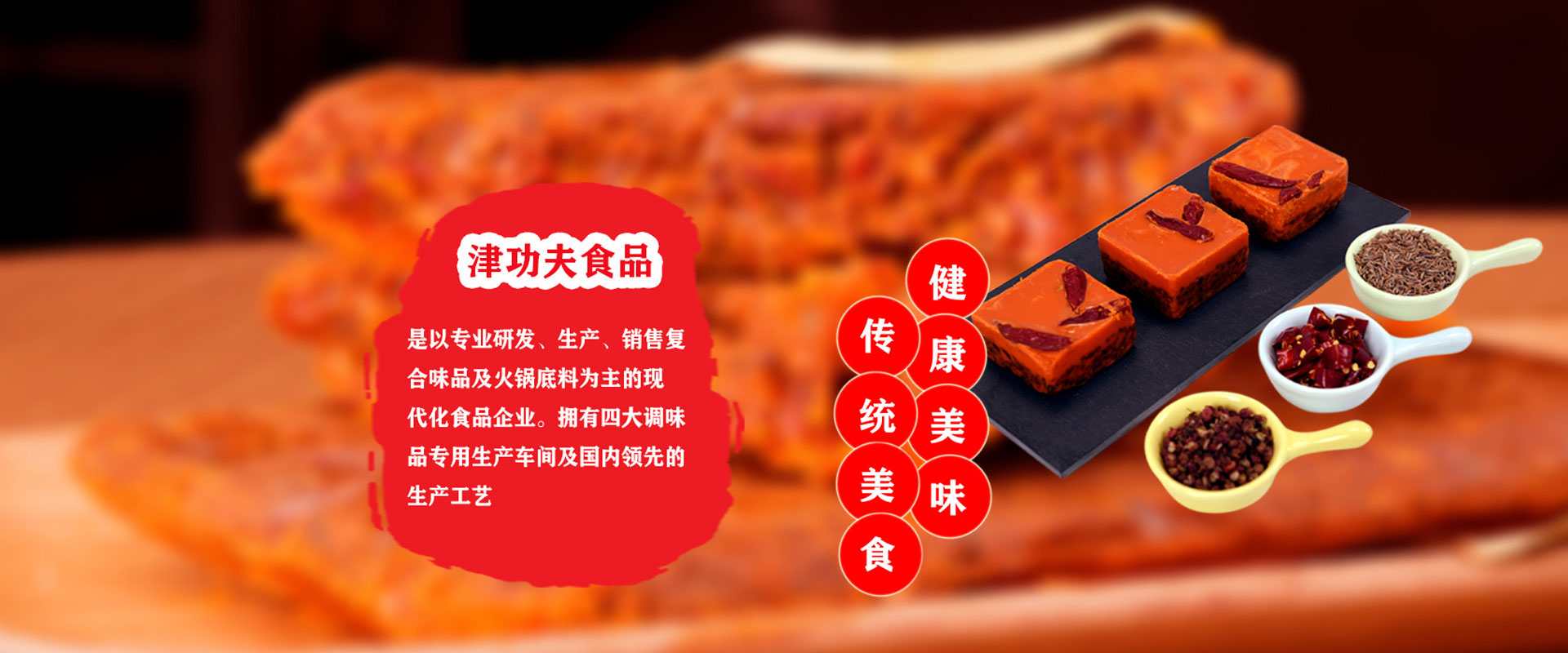 廣東津功夫食品有限公司,位于廣東省肇慶市國家高新區(qū),占地面積約2.5萬平方米,是以專業(yè)研發(fā)、生產、銷售復合調味品及火鍋底料為主的現代化食品企業(yè)。      "津功夫"為公司注冊商標。公司擁有四大調味品專用生產車間及國內領先的生產工藝;裝備有反應釜、電磁炒鍋、天然氣炒鍋、蒸煮生產線、各型號全自動包裝機、冷封生產線等先進生產設備,年生產能力達2萬噸;配備有微檢、重金屬、金檢、水分、折光等檢測設備。        公司依照國家食品安全法,采用GMP及ISO管理標準,已先后通過ISO-22000質量管理體系認證、HACCP認證。        公司研發(fā)團隊由公司創(chuàng)始人親自帶隊,立足當下,不斷創(chuàng)新,將在調味品行業(yè)20余年的潛心研究成果變?yōu)楝F實,精品輩出,為客戶創(chuàng)造更多、更好的價值。公司以川味調味品為根,以客戶需求為本,開發(fā)了復合調味品及火鍋底料兩大板塊的系列產品。復合調味品板塊涵蓋: